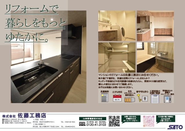 マンションリフォームの施工事例を掲載したチラシを発行しました。